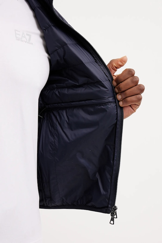 Жилет из коллекции EA7 Emporio Armani. Этот лёгкий утеплённый жилет изготовлен из стёганой ткани. Наполнитель из натурального пуха и пера обеспечивает высокий уровень защиты от холода. – Проект Armani Sustainability Project – Эта модель изготовлена из органических и переработанных материалов. Кроме того, в процессе производства используется меньше воды и энергии. - Обычная посадка. - Застежка-молния. - Два прорезных боковых кармана на молнии.