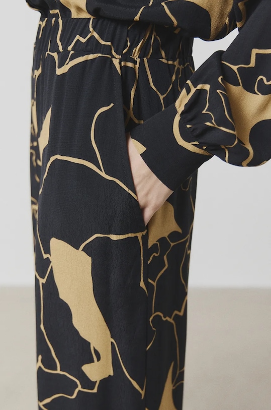 Брюки из коллекции Answear.LAB из лёгкой ткани. Модель выполнена из дышащего вискозного материала. - Высокая талия с эластичным поясом. - Тонкая, неэластичная ткань. - Два боковых накладных кармана. - Свободная нога. - Ширина талии: 32 см. - Ширина бедер: 57 см. - Высота талии: 30 см. - Ширина штанины внизу: 33 см. - Ширина штанины: 35 см. - Длина внешней части штанины: 108 см. - Размеры указаны для размера: S.