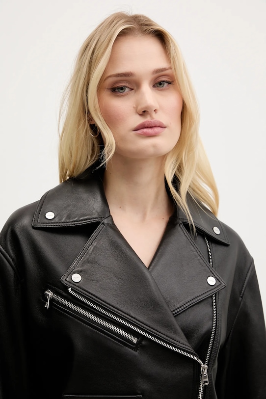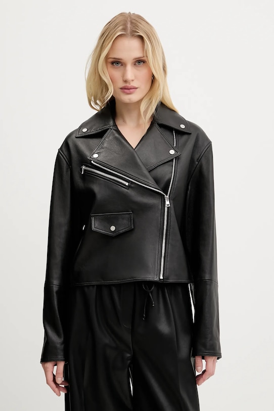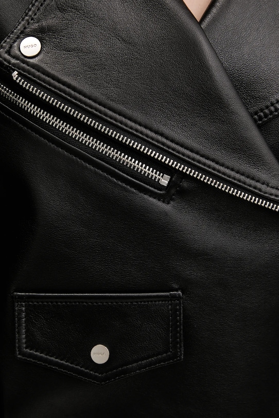 Байкерская куртка из коллекции HUGO. Модель без подкладки выполнена из натуральной кожи. Материал прочный и влагостойкий. - Данное изделие частично изготовлено из переработанного полиэстера. - Простой дизайн, не стесняющий движений. - Застежка-молния. - Нагрудный карман на молнии. - Неутепленная модель с подкладкой. - Молнии по низу рукавов. - Длина: 49 см. - Ширина под мышками: 45 см. - Размеры указаны для размера: S.