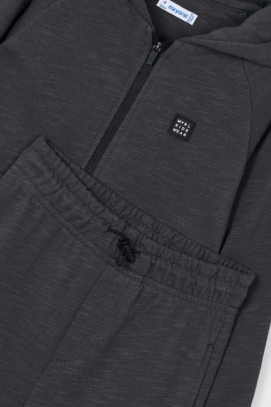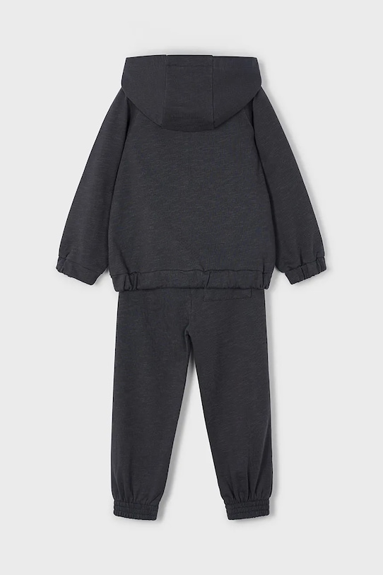 Детский спортивный костюм из коллекции Mayoral. Изготовлен из гладкого трикотажного полотна. - В комплект входят толстовка и брюки. - Длинный рукав. - Модель с капюшоном. - Застежка-молния. - Эластичный пояс со шнурками. - Свободный крой, обеспечивающий полную свободу движений. - Рукава реглан благодаря своей конструкции обеспечивают большую свободу движений. - Рукава и нижний край отделаны удобными эластичными манжетами.