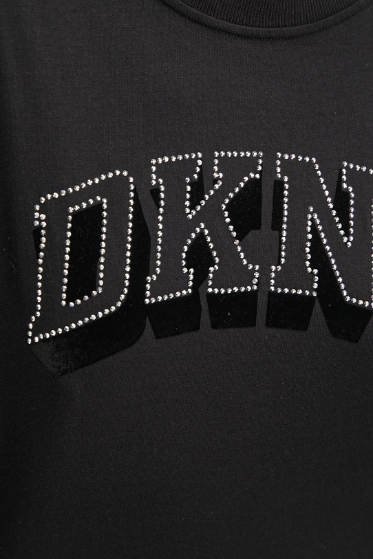 Эта футболка из коллекции Dkny выполнена из трикотажного полотна с аппликацией. Изготовлена из исключительно комфортной хлопковой ткани. - Свободный крой, обеспечивающий полную свободу движений. - Крой рукава со спущенной линией плеча не ограничивает подвижность. - Классический круглый вырез. - Тонкий, эластичный трикотаж. - Модель со стразами. - Длина: 51 см. - Ширина под мышками: 53 см. - Размеры указаны для размера: S.