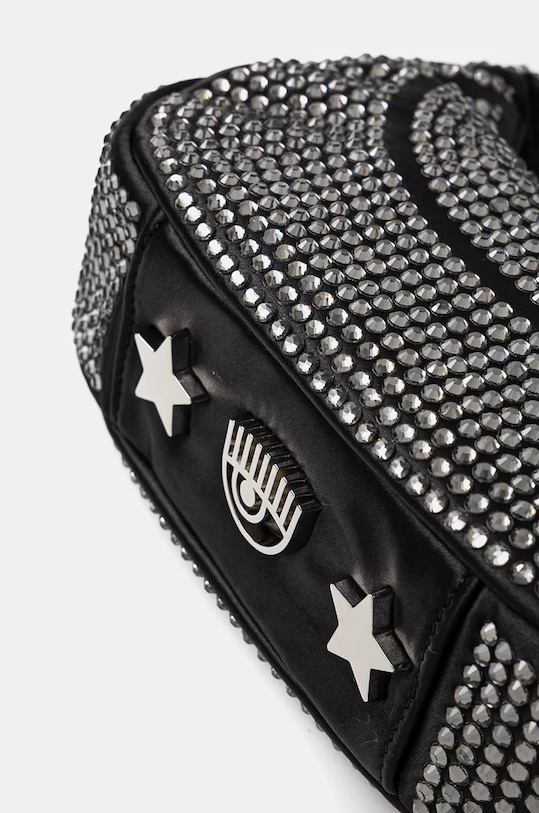 Сумка из коллекции Chiara Ferragni. Модель с застёжкой выполнена из комбинации текстиля и синтетических материалов. - Входящий в комплект тканевый чехол защищает изделие от пыли. - Отделение на молнии. - Рукоятка. - Внутренний карман на молнии - Внутренний накладной карман. - Модель на подкладке. - Не подходит для формата А4. - Длина ручки: 30 см. - Глубина: 6 см. - Высота: 12 см. - Ширина у основания: 20 см.