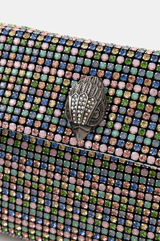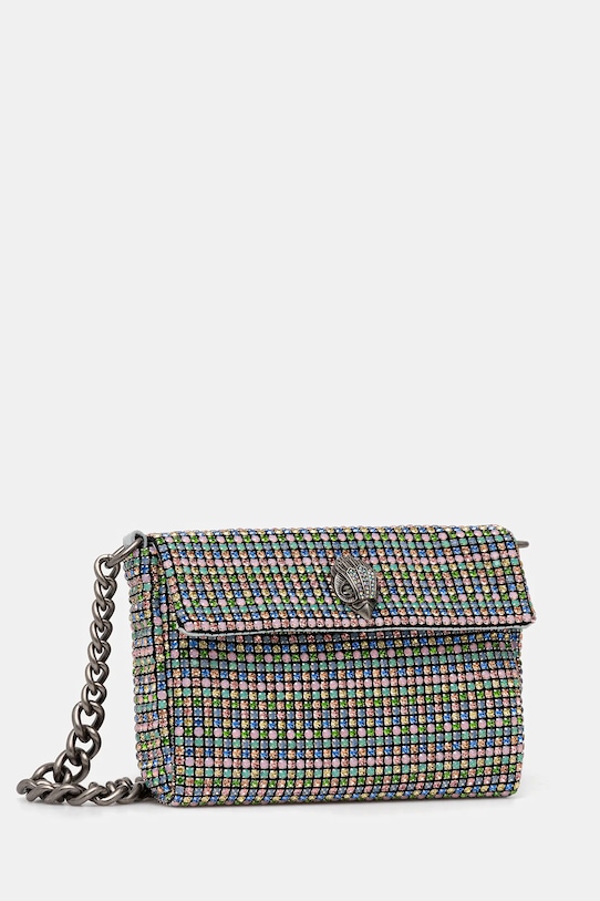 Маленькая сумочка из коллекции Kurt Geiger London. Застёжка выполнена из кубического циркония. - Клапан застегивается на магнит. - Внутренний накладной карман для удобного и безопасного хранения телефона и других мелких предметов. - Не подходит для формата А4. - Рукоятка. - Входящий в комплект тканевый чехол защищает изделие от пыли. - Длина ручки: 57 см. - Глубина: 4 см. - Высота: 14 см. - Ширина у основания: 21 см.