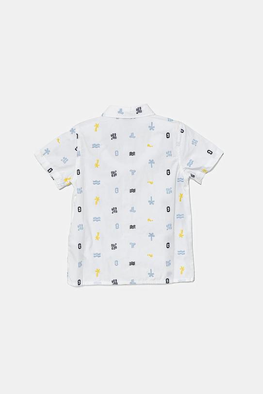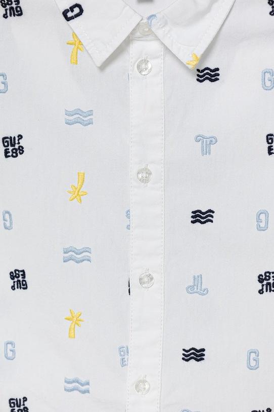 Детская рубашка из коллекции Guess выполнена из ткани с рисунком. Модель выполнена из дышащего хлопкового материала. - Органический хлопок выращивается без использования вредных химикатов, химических пестицидов и искусственных удобрений. - Простой дизайн, не стесняющий движений. - Удобная застежка на кнопки позволяет легко надевать и снимать. - Мягкий классический воротник «Кент». - Короткий рукав. - Тонкая, неэластичная ткань.