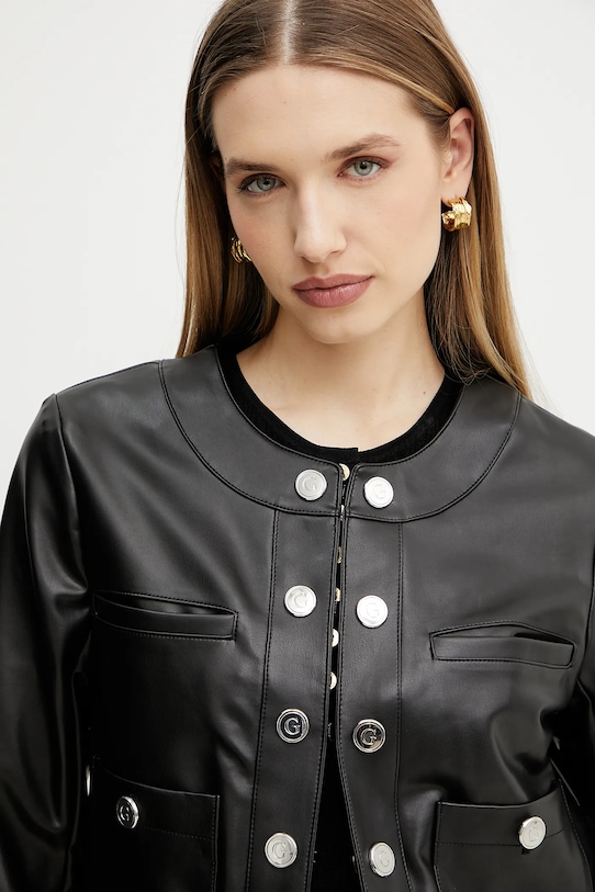 Эта куртка из коллекции Guess. Модель без подкладки выполнена из искусственной кожи. Слегка тянущийся материал обеспечивает полную свободу движений. - Простой дизайн, не стесняющий движений. - Застежка на крючок и петлю. - Четыре кармана спереди для удобного хранения мелких предметов. - Неутепленная модель с подкладкой. - Длина рукава: 59 см. - Длина: 50 см. - Ширина под мышками: 46 см. - Размеры указаны для размера: S.