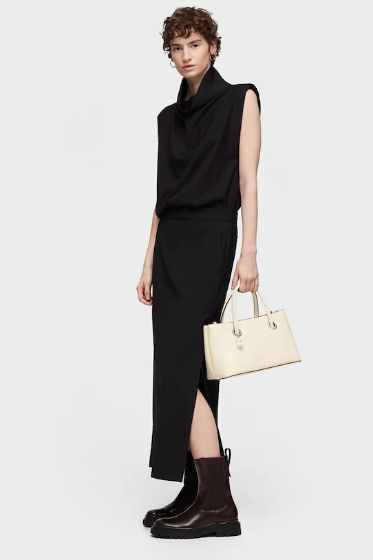 Сумка среднего размера из коллекции Tous. Модель изготовлена из искусственной кожи, легко чистится и ухаживается. - Сумка для ношения в руке или на плече. - Присоединяемый длинный ремешок с регулировкой. - Короткая ручка. - Модель с декоративным кольцом для ключей. - Имеет два отделения на молнии. - Открытый внутренний карман. - Рельефный логотип. - Глубина: 15 см. - Высота: 18 см. - Ширина у основания: 30,5 см.