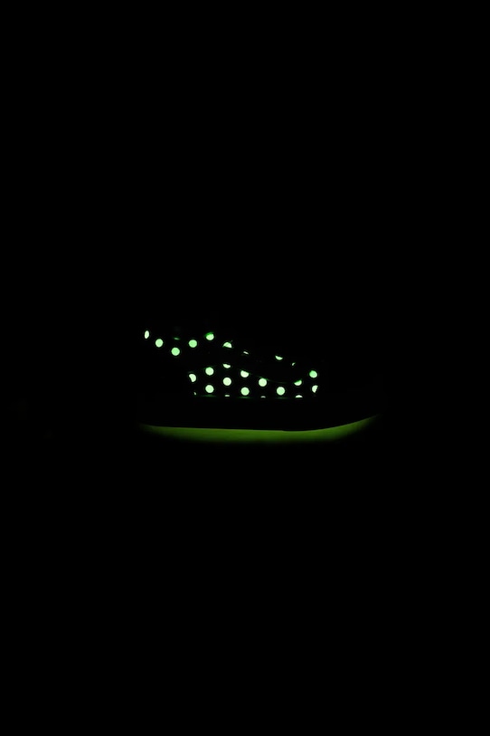 Эти детские кроссовки из коллекции Vans изготовлены из комбинации замши и текстиля. Лёгкие и удобные, они идеально подходят для повседневной носки. - Круглый, мягкий нос. - Мягкий задник защищает пятку от истирания. - Нескользящая резиновая подошва. - Застежка-липучка позволяет легко надевать и снимать обувь. - Текстильная внутренняя часть комфортна для ног и облегчает содержание обуви в чистоте. - Светящаяся в темноте печать.