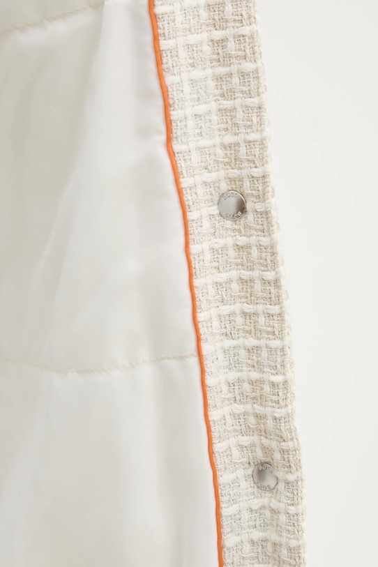 Этот жилет из коллекции BOSS Orange с лёгкой утеплённой подкладкой изготовлен из ткани с рисунком. Он также дополнен синтетическим утеплителем для дополнительного комфорта в прохладную погоду. - Изделие содержит переработанные волокнистые материалы. - Большой размер. - Легкоутепленная модель с подкладкой. - Застежка-кнопка. - Накладные карманы. - Длина: 71 см. - Ширина под мышками: 62 см. - Размеры указаны для размера: 36.