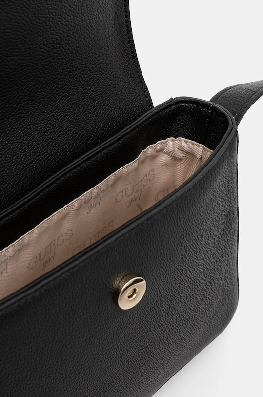 Маленькая детская сумочка из коллекции Guess. Модель на молнии, выполнена из экокожи. - Клапан застегивается на магнит. - Несъемный регулируемый ремешок позволяет индивидуально подогнать посадку. - Модель на подкладке. - Не подходит для формата А4. - Внутренних карманов нет. - Минимальная длина ремешка: 104 см. - Максимальная длина ремня: 117 см. - Глубина: 5,5 см. - Высота: 17 см. - Ширина у основания: 21 см.