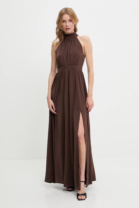 Это платье из коллекции Answear.LAB выполнено из тонкого, слегка тянущегося трикотажа. Модель выполнена из нежного, воздушного материала, идеально подходящего для теплого времени года. - Расклешенный крой. - Вырез халтер. - Застежка-молния сзади. - Верхняя часть платья с дополнительным слоем материала в виде подкладки. - Впечатляющий крой. - Длина: 150 см. - Ширина под мышками: 42 см. - Размеры указаны для размера: S.