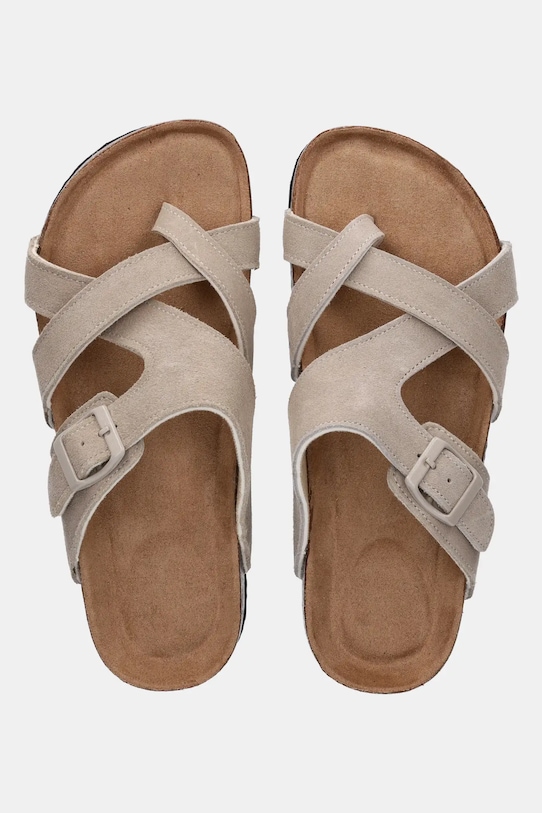 Эти шлёпанцы Answear.LAB изготовлены из замши. Эти лёгкие и удобные слипоны идеально подходят для повседневной носки. - Регулируемый ремешок для оптимальной посадки по ноге. - Анатомическая стелька поддерживает свод стопы и обеспечивает длительный комфорт. - Текстильная внутренняя часть комфортна для ног и облегчает содержание обуви в чистоте. - Подошва из пеноматериала обеспечивает более мягкое ощущение и дополнительную амортизацию.
