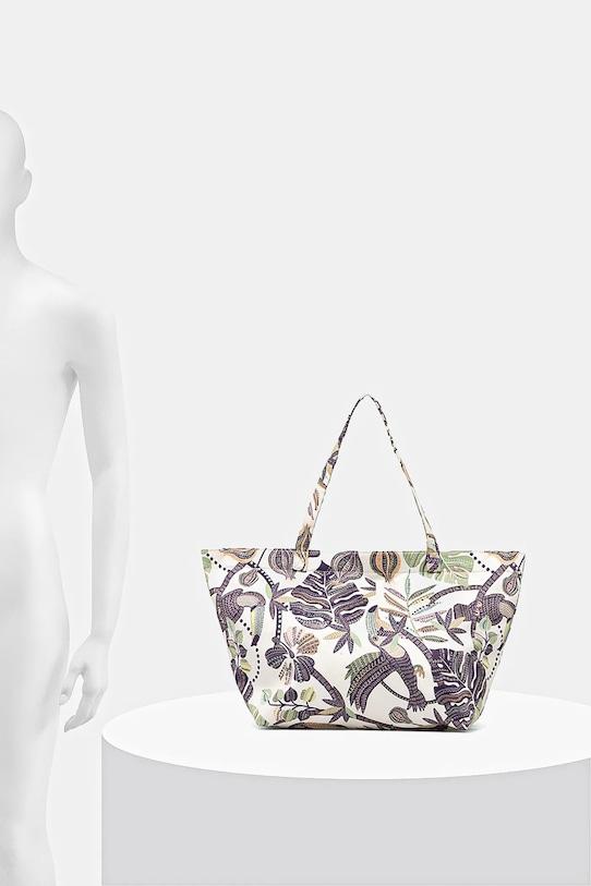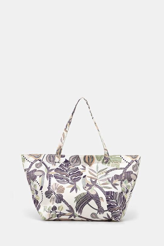 Большая сумка-шоппер из коллекции Medicine. Модель на молнии, выполнена из ткани с узором. - Застежка-молния. - Внутренний карман на молнии. - Два внутренних накладных кармана. - Длинные ручки. - Приятный на ощупь, узорчатый материал. - Узор с растительными и животными мотивами. - Модель на подкладке. - Вмещает формат А4. - Глубина: 22 см. - Высота: 31 см. - Ширина у основания: 35 см. - Длина ручки: 57 см.