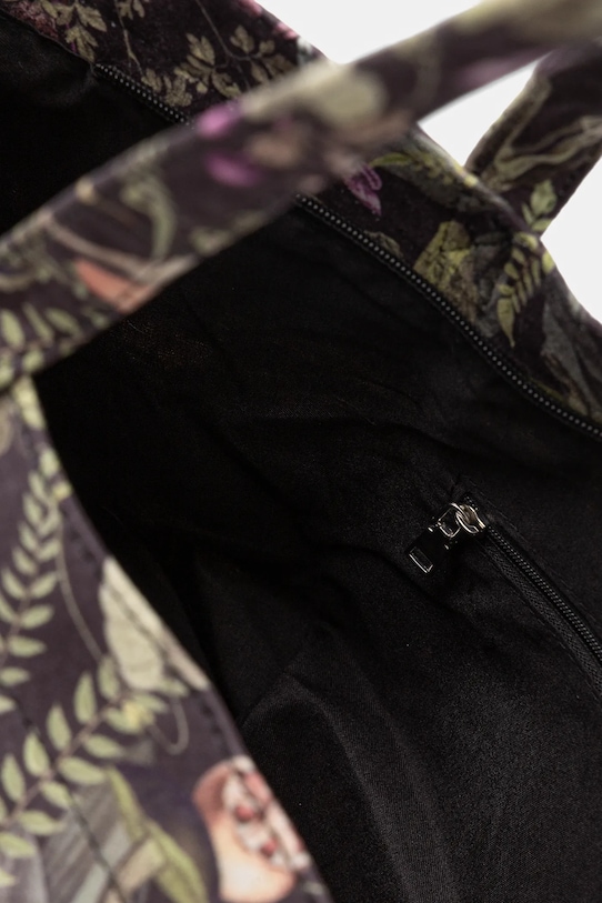 Большая сумка-шоппер из коллекции Medicine. Модель на молнии, выполнена из ткани с узором. - Застежка-молния. - Внутренний карман на молнии. - Два внутренних накладных кармана. - Длинные ручки. - Приятный на ощупь, узорчатый материал. - Узор с растительными и животными мотивами. - Модель на подкладке. - Вмещает формат А4. - Глубина: 22 см. - Высота: 31 см. - Ширина у основания: 35 см. - Длина ручки: 57 см.