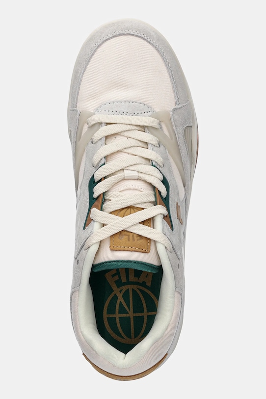 Эти кроссовки из коллекции Fila изготовлены из комбинации текстиля и замши. Усиленный верх обеспечивает устойчивость. - Круглый, жёсткий носок. - Жесткий задник стабилизирует пятку и удерживает ногу в обуви, не давая ей выскальзывать во время движения. - Плоские шнурки устраняют давление на подъем стопы, обеспечивая хорошую посадку и комфорт. - Съемная, легко моющаяся вставка. - Резиновая подошва прочная и устойчивая к повреждениям.
