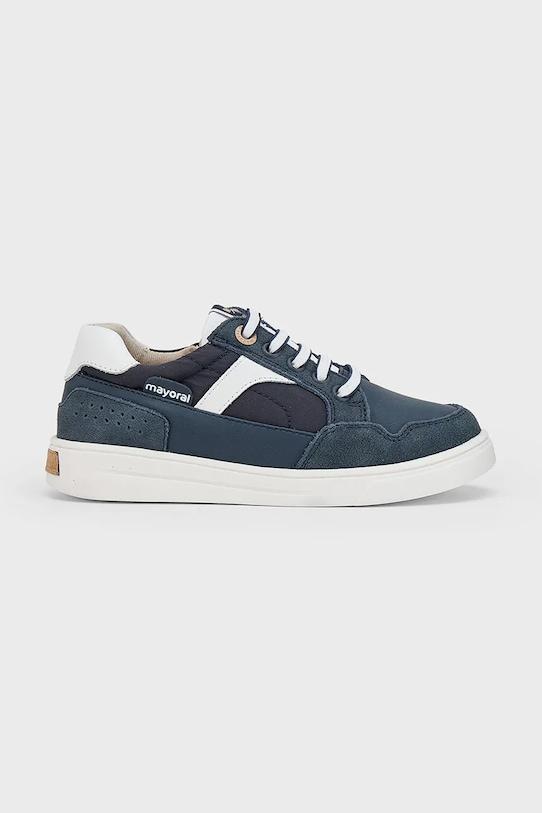 Детские кроссовки из коллекции Mayoral. Изготовлены из комбинации замши и искусственной кожи. - Круглый нос. - Резиновая подошва. - Кожаная стелька комфортна для стопы и предотвращает натирание, потертости и появление неприятного запаха. - Модель с текстильной подкладкой. - Гибкий верх легко адаптируется к форме стопы. - Эластичные шнурки и застежка на липучке позволяют легко надевать и снимать обувь. - Декоративные детали.
