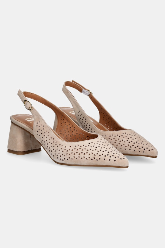 Туфли-лодочки из коллекции Answear.LAB, изготовленные из замши. Эта модель имеет кожаную подкладку, которая обеспечивает комфорт и предотвращает натирание, потертости и появление неприятного запаха. - Острый нос. - Модель с открытой пяткой. - Застежка на две пряжки со штифтом для индивидуальной посадки. - Модель с устойчивым каблуком. - Высота каблука: 5,5 см. - Длина вставки: 22,5 см. - Размеры указаны для размера: 36.