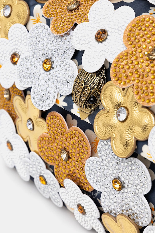 Небольшая сумочка из коллекции Kurt Geiger London. Модель на молнии, выполнена из текстиля. - Клапан застегивается на магнит. - Имеет два отделения. - Внутренний накладной карман для телефона. - Несъемный, нерегулируемый ремешок. - Не подходит для формата А4. - Входящий в комплект тканевый чехол защищает изделие от пыли. - Длина ремешка: 114 см. - Глубина: 8 см. - Высота: 19 см. - Ширина у основания: 26 см.