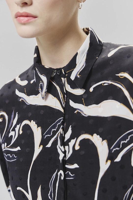 Эта рубашка из коллекции Answear.LAB выполнена из ткани с рисунком. Модель выполнена из дышащего вискозного материала. - Свободный крой со спущенными плечами. - Крой рукава со спущенной линией плеча не ограничивает подвижность. - Манжеты на пуговицах. - Модель с воротником. - Длина рукава (от воротника): 78 см. - Длина спереди: 70 см. - Длина спинки: 82 см. - Ширина под мышками: 62 см. - Указаны размеры: XS/S.