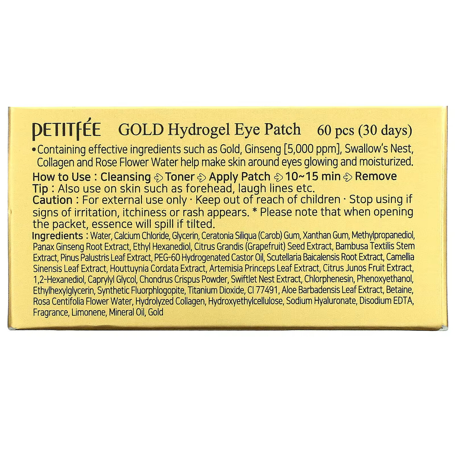 Содержит такие действенные ингредиенты, как золото, женьшень [5000 част./млн], ласточкино гнездо, коллаген и вода из цветков розы, которые увлажняют кожу вокруг глаз и придают ей сияние.