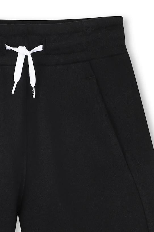 Эти детские шорты из коллекции BOSS изготовлены из эластичной ткани, обеспечивающей комфорт и свободу движений. Благодаря исключительно удобному и дышащему материалу они идеально подходят для тёплого времени года. - Простой дизайн, не стесняющий движений. - Обхват талии обычный. - Эластичный пояс и дополнительная регулировка ширины с помощью шнурков для предотвращения сползания во время движения. - Два боковых накладных кармана.