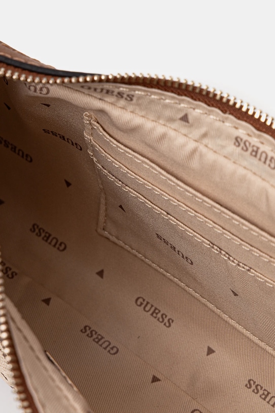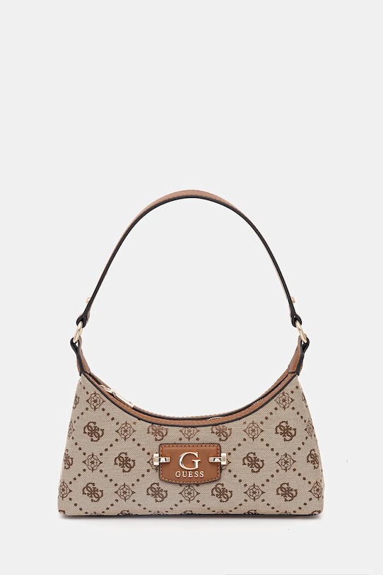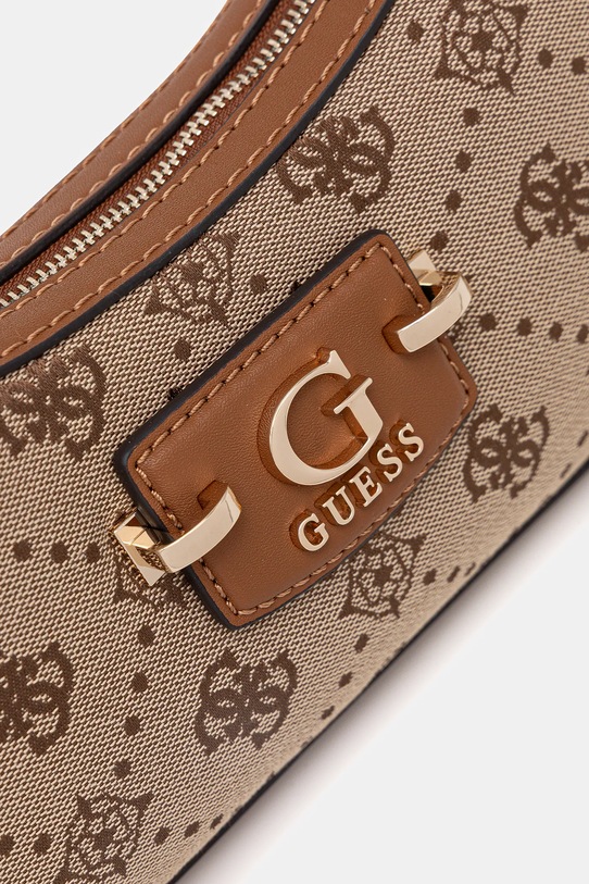 Небольшая сумочка из коллекции Guess. Модель на молнии, выполнена из текстильного материала. - Не подходит для формата А4. - Входящий в комплект тканевый чехол защищает изделие от пыли. - Отделение на молнии. - Внутренние отделения для карт. - Модель оснащена металлическими ножками, защищающими дно сумки. - Длинная ручка. - Глубина: 4 см. - Высота: 15 см. - Ширина у основания: 27 см. - Длина ручки: 47 см.