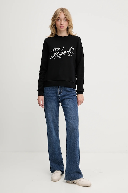 Свитшот из коллекции Karl Lagerfeld из тонкого эластичного трикотажа. - Рукава и низ изделия отделаны удобными эластичными манжетами. - Вышитый логотип. - Модель с декоративной вышивкой.