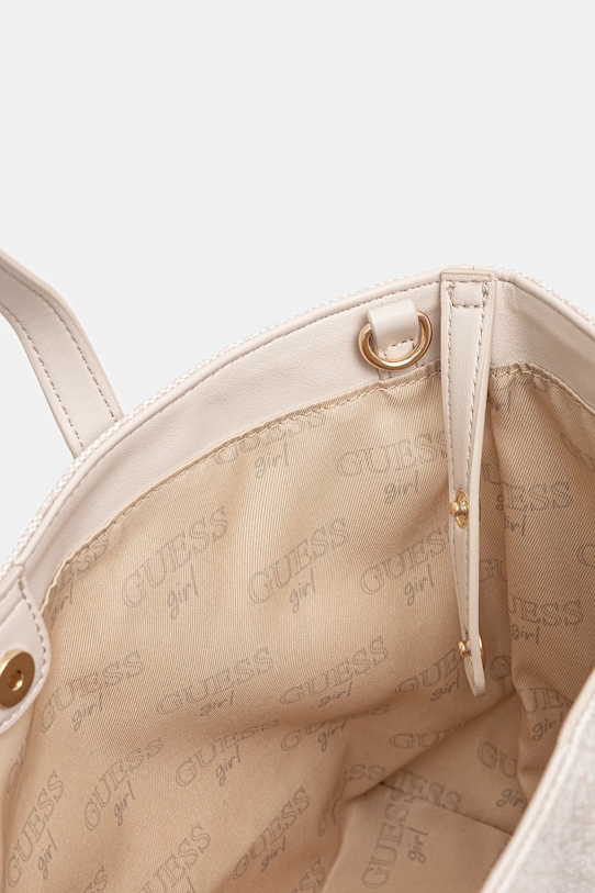 Детская сумочка среднего размера из коллекции Guess. Модель на молнии, выполнена из экокожи. - Магнитная застежка. - Внутренних карманов нет. - Модель на подкладке. - Не подходит для формата А4. - Имеет ручки и съемный регулируемый ремень. - Глубина: 12,5 см. - Высота: 21,5 см. - Ширина у основания: 25,5 см. - Длина ручки: 44 см. - Минимальная длина ремешка: 85 см. - Максимальная длина ремня: 101 см.