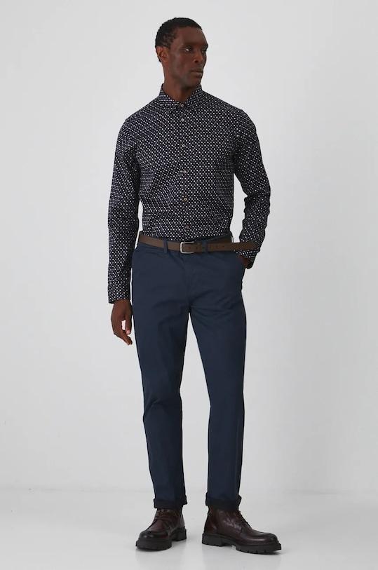 Брюки из коллекции «Медицина». Изготовлены из гладкой ткани. - Обычная посадка. - Брюки имеют косые карманы - они идеально вписываются в стиль smart casual. - Обхват талии обычный. - Гладкая ткань. - Ремешок из эко-кожи в комплекте. - Ширина талии: 45,5 см. - Ширина бедер: 55 см. - Высота талии: 26,5 см. - Ширина штанины внизу: 19,5 см. - Длина по внутреннему шву: 81 см. - Размеры указаны для размера: L.