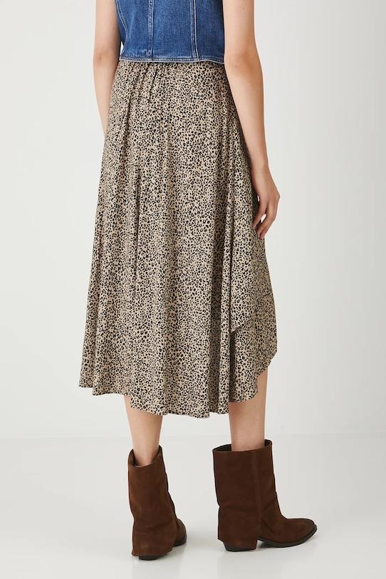 Юбка из коллекции Medicine. Асимметричный крой, выполнена из узорчатой ткани. - Асимметричная модель. - Эластичная резинка сзади. - Застежка-молния сбоку. - У него есть щель. - Модель длины миди. - Узорчатая ткань. - Леопардовый узор. - Ширина талии (до растягивания): 34,5 см. - Ширина талии (после растяжения): 45 см. - Длина спереди: 64,5 см. - Длина спинки: 84 см. - Размеры указаны для размера: S.