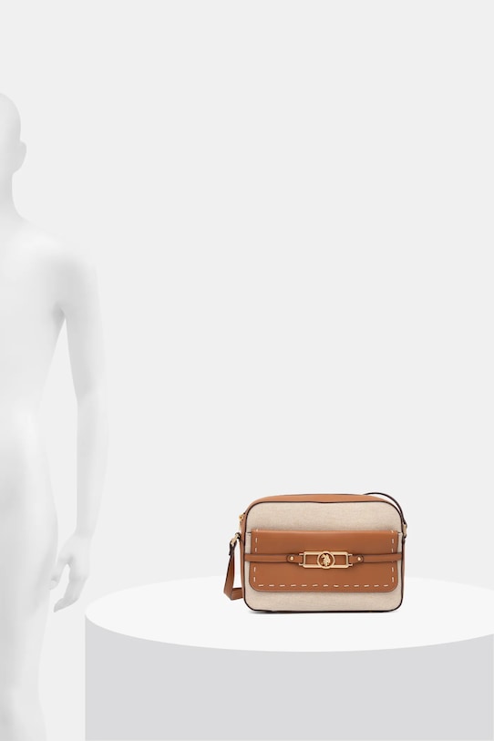 Небольшая сумочка из коллекции US Polo Assn. Модель на молнии, выполнена из комбинации текстиля и экокожи. - Застежка-молния. - Несъемный, регулируемый ремешок. - Не подходит для формата А4. - Входящий в комплект тканевый чехол защищает изделие от пыли. - Передний карман с магнитной застежкой. - Три внутренних кармана: один на молнии, два накладных. - Глубина: 6 см. - Высота: 19 см. - Ширина у основания: 25 см.