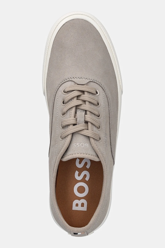 Эти кроссовки BOSS изготовлены из замши. Мягкий верх идеально повторяет форму стопы. - Плоские шнурки устраняют давление на подъем стопы, обеспечивая хорошую посадку и комфорт. - Круглый, слегка утолщенный носок. - Усиленный задник обеспечивает отличную поддержку лодыжки и пятки. - Текстильная внутренняя часть комфортна для ног и облегчает содержание обуви в чистоте. - Резиновая подошва прочная и устойчивая к повреждениям.