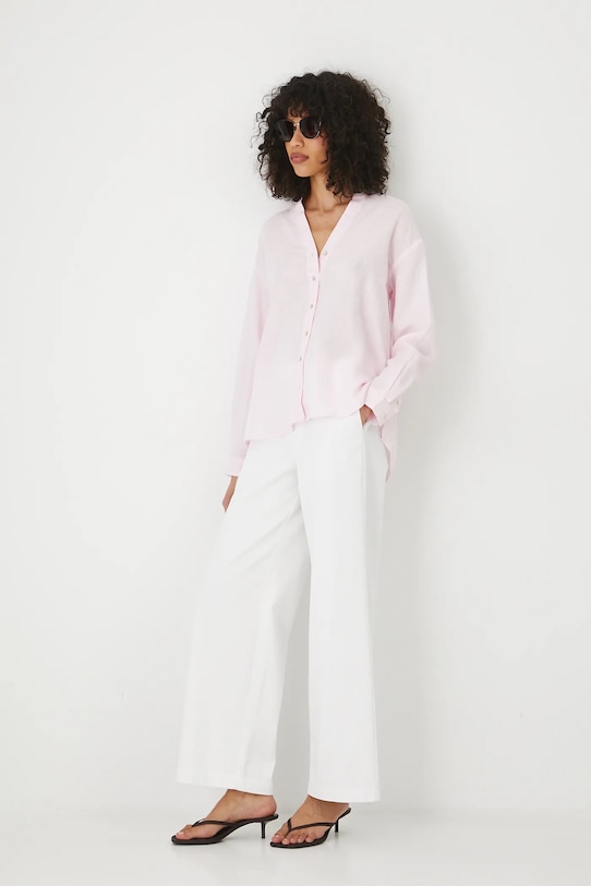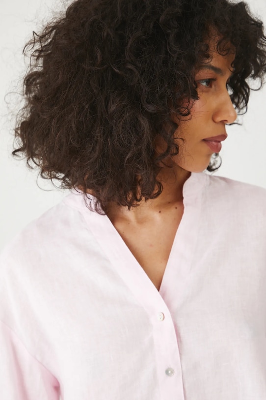 Эта блузка из коллекции Medicine выполнена из льна и имеет заостренный вырез. - Натуральный, воздушный и прочный материал, изготовлен из 100% льна. - Большой размер. - Заниженная линия плеча. - Острый вырез. - Длинный рукав. - Гладкая ткань. - Манжеты на пуговицах. - Застежка на пуговицы. - Длина рукава (от горловины): 71,5 см. - Ширина груди: 57 см. - Длина: 68 см. - Размеры указаны для размера: S.