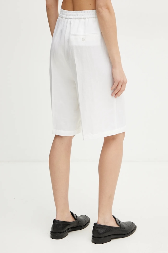 Шорты из коллекции BOSS из тонкой, неэластичной ткани. Дышащая ткань с высоким содержанием льна. - Модель с высокой талией, застежкой на молнию, пуговицы и крючок. - Эластичная резинка сзади. - Два накладных кармана спереди. - Имитация карманов на ягодицах. - Ширина талии: 33 см. - Ширина бедер: 44 см. - Высота талии: 27 см. - Ширина штанины: 28 см. - Длина штанины: 54 см. - Размеры указаны для размера: 36.