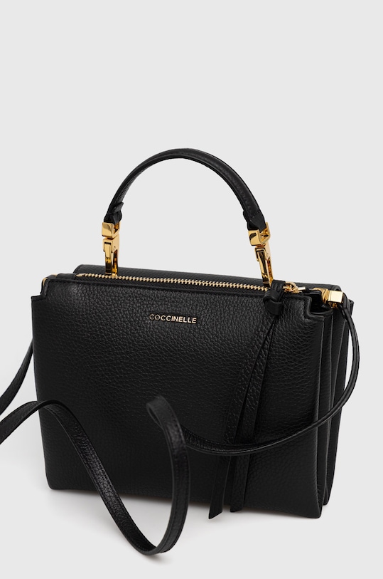 Небольшая сумочка из коллекции Coccinelle. Модель на молнии, выполнена из натуральной кожи. - Регулировка глубины с помощью защелок. - Сумка для ношения в руке или на плече. - Имеет съемную ручку и съемный регулируемый ремень. - Отделение на молнии. - Не подходит для формата А4. - В комплект входит чехол для переноски. - Глубина: 8 см. - Высота: 14 см. - Ширина у основания: 19 см. - Длина ручки: 25 см.