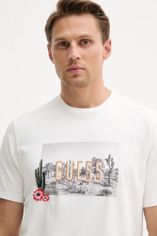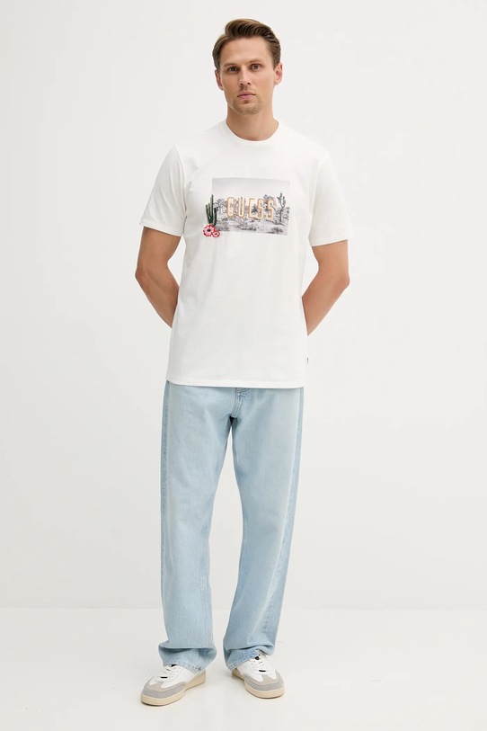 Эта футболка из коллекции Guess выполнена из тонкой, эластичной ткани. Модель выполнена из исключительно комфортного хлопкового материала. - Органический хлопок выращивается без использования вредных химикатов, химических пестицидов и искусственных удобрений. - Обычная посадка. - Классический круглый вырез. - Плоские швы защищают кожу от натирания и раздражения и обеспечивают высокий уровень комфорта во время занятий спортом.