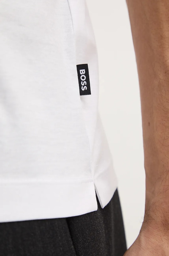 Футболка BOSS из тонкой эластичной ткани. Модель выполнена из дышащего хлопкового материала. - Процесс мерсеризации делает материал гораздо более прочным, немнущимся и необычайно мягким и приятным на ощупь. - Приталенный крой обеспечивает комфорт во время занятий. - Круглый ребристый вырез. - Короткий рукав. - Гладкая трикотажная ткань. - Длина: 70 см. - Ширина под мышками: 52 см. - Размеры указаны для размера: M.