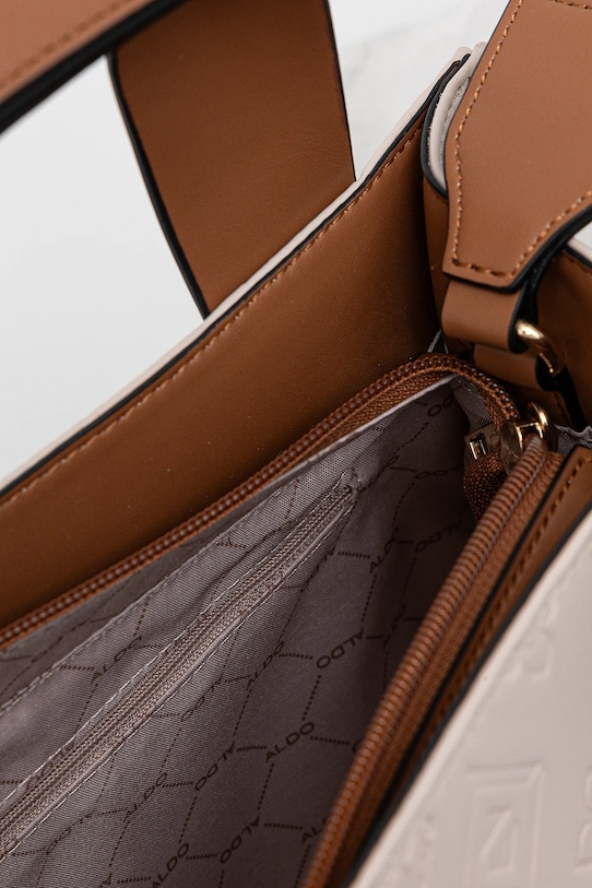 Сумка-тоут среднего размера из коллекции Aldo. Сумка на молнии изготовлена из искусственной кожи, которую легко чистить и ухаживать. - Имеет ручки и несъемный регулируемый ремень. - Застежка-молния. - Узорчатая подкладка. - Имеет два внутренних кармана: один прорезной, другой на молнии. - Модель оснащена металлическими ножками, защищающими дно сумки. - Ширина у основания: 27 см. - Высота: 22 см. - Глубина: 11 см.