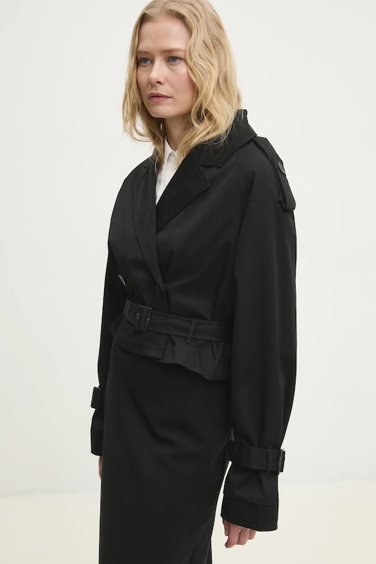 Куртка из коллекции Answear.LAB. Эта модель без подкладки выполнена из гладкого материала. Коллекция доступна эксклюзивно на Answear.com. - Простой дизайн, не стесняющий движений. - Двубортный пиджак с застежкой на пуговицы. - Текстильный ремешок в комплекте. - Неутепленная модель с подкладкой. - Длина рукава (от воротника): 72 см. - Длина: 46 см. - Ширина под мышками: 50 см. - Размеры указаны для размера: S.