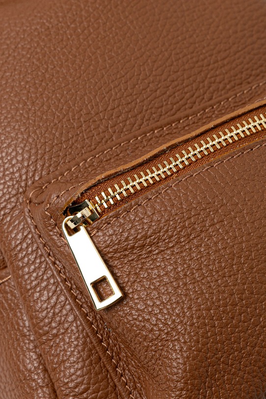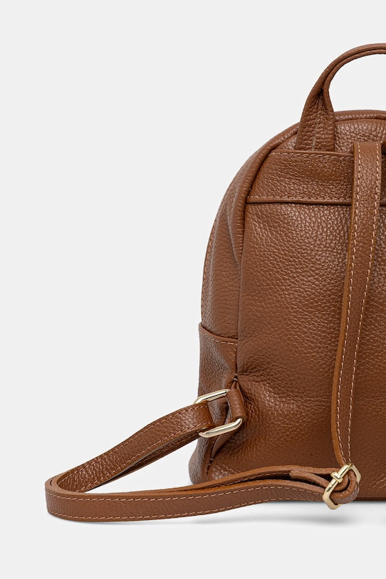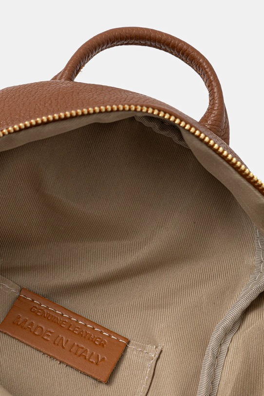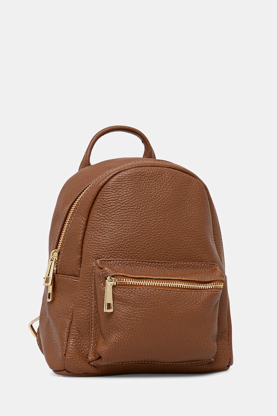 Рюкзак из коллекции Answear LAB. Изготовлен из натуральной кожи. - Застежка-молния. - Модель на подкладке. - Не подходит для формата А4. - Короткая ручка для удобной переноски в руке. - Регулируемая длина ремешка. - Карман на молнии спереди. - Внутренний накладной карман. - Входящий в комплект тканевый чехол защищает изделие от пыли. - Глубина: 9,5 см. - Высота: 22 см. - Ширина у основания: 21 см.