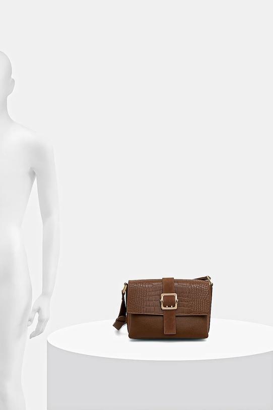 Сумка среднего размера из коллекции Medicine. Модель на молнии, выполнена из экокожи. - Клапан застегивается на магнит. - Имеет три отделения: одно на молнии, два на магнитной застежке. - Внутренний карман на молнии. - Несъемный, регулируемый ремешок. - Материал с текстурой кожи крокодила. - Модель на подкладке. - Не подходит для формата А4. - Глубина: 15 см. - Высота: 19 см. - Ширина у основания: 23 см.