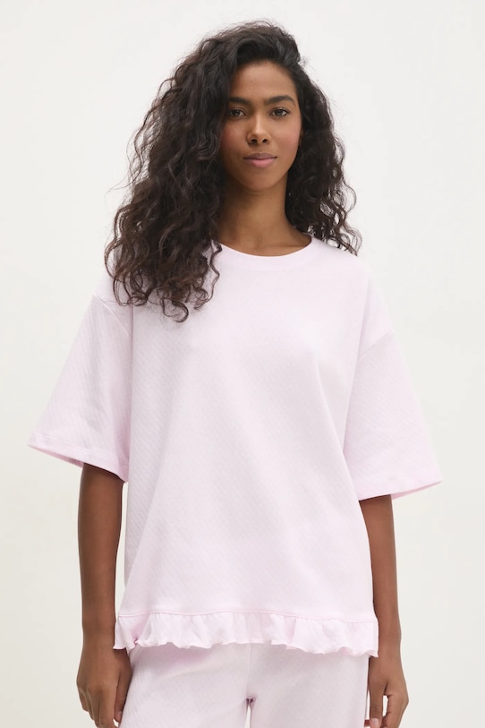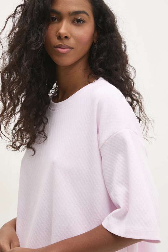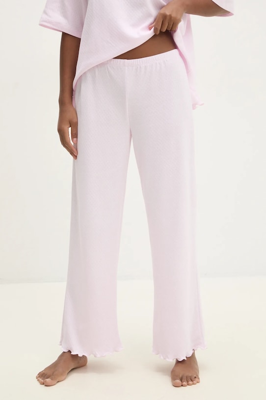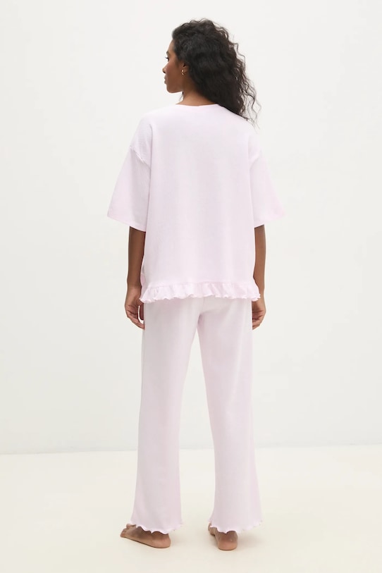 Пижама из коллекции Answear Lab. Изготовлена из тонкой эластичной ткани. - Свободный крой, обеспечивающий полную свободу движений. - Классический круглый вырез. - Узкий эластичный пояс. - Крой рукава со спущенной линией плеча не ограничивает подвижность. - Длина: 63 см. - Ширина талии: 35 см. - Ширина под мышками: 58 см. - Высота талии: 26 см. - Длина штанины: 89 см. - Размеры указаны для размера: S.