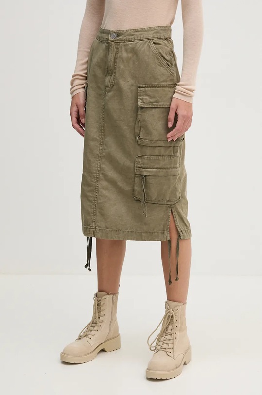 Юбка из коллекции Alpha Industries выполнена из гладкой ткани. Модель выполнена из исключительно комфортного хлопкового материала. - Простой дизайн, не стесняющий движений. - Застежка на пуговицы и молнию. - Обширная система карманов позволяет легко и безопасно хранить мелкие предметы. - Нижний край отделан завязками. - Ширина талии: 37 см. - Ширина бедер: 50 см. - Длина: 70 см. - Размеры указаны для размера: S.