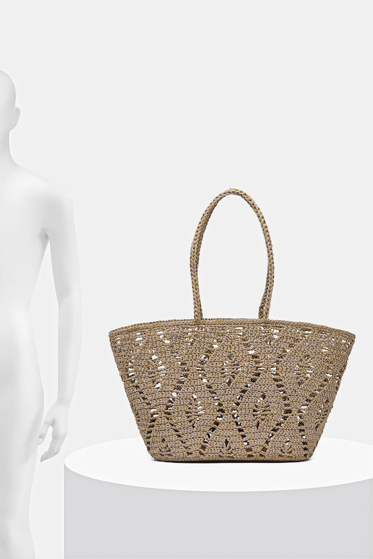 Большая пляжная корзина из коллекции Answear.LAB. Эта модель с открытым верхом выполнена из тканого материала. - Входящий в комплект тканевый чехол защищает изделие от пыли. - Модель без подкладки. - Вмещает формат А4. - Расстегивающаяся модель. - Длинные ручки для удобной переноски в руке или на плече. - Глубина: 11 см. - Высота: 30 см. - Ширина у основания: 35 см. - Ширина в самом широком месте: 52 см.