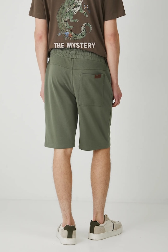 Шорты из коллекции «Медицина». Изготовлены из гладкого трикотажного полотна. - Обычная посадка. - Обхват талии обычный. - Эластичный пояс со шнурками. - Накладные карманы. - Гладкая трикотажная ткань. - Ширина талии (до растягивания): 42 см. - Ширина талии (после растяжения): 53 см. - Ширина бедер: 57 см. - Высота талии: 30,6 см. - Длина по внутреннему шву: 25,5 см. - Размеры указаны для размера: L.