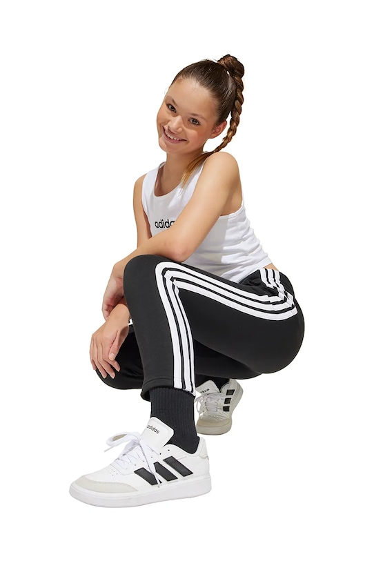 Эти детские спортивные штаны из коллекции adidas изготовлены из трикотажного полотна. Они мягкие и приятные на ощупь. - Данное изделие частично изготовлено из переработанного полиэстера. - Крой с зауженными брючинами, не стесняющими движений. - Эластичный пояс и дополнительная регулировка ширины с помощью шнурков для предотвращения сползания во время движения. - Два боковых накладных кармана. - Тонкий, эластичный трикотаж.