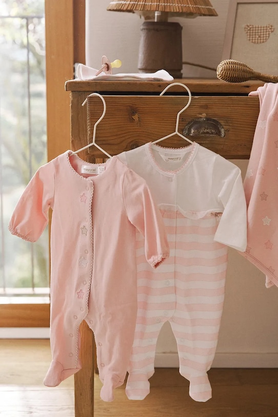 Детские комбинезоны из коллекции Mayoral Newborn. Изготовлены из мягкого хлопкового трикотажа. – Инициатива «Лучший хлопок». Изделия с этой маркировкой содержат не менее 50% хлопка от розничного продавца или бренда, участвующего в инициативе «Лучший хлопок» и инвестирующего в развитие BCI. - Простой дизайн, не стесняющий движений. - Короткий рукав. - Модель с декоративными оборками. - Круглый вырез. - Застежка-кнопка.