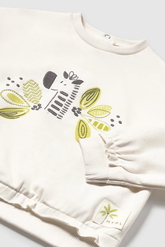 Детская толстовка из коллекции Mayoral. Изготовлена из трикотажного полотна с принтом. – Инициатива «Лучший хлопок». Изделия с этой маркировкой содержат не менее 50% хлопка от розничного продавца или бренда, участвующего в инициативе «Лучший хлопок» и инвестирующего в развитие BCI. - Простой дизайн, не стесняющий движений. - Рукава и нижний край отделаны удобными эластичными манжетами. - Круглый вырез. - Модель с принтом.
