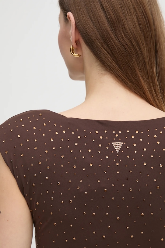 Это платье из коллекции Guess выполнено из трикотажного полотна с аппликацией. Полиамид обеспечивает большую прочность. - Простой дизайн, не стесняющий движений. - Классический круглый вырез. - Дополнительный слой материала в виде подкладки. - Дополнительный слой материала в виде подкладки спереди. - Тонкий, эластичный трикотаж. - Длина: 90 см. - Ширина под мышками: 38 см. - Размеры указаны для размера: S.