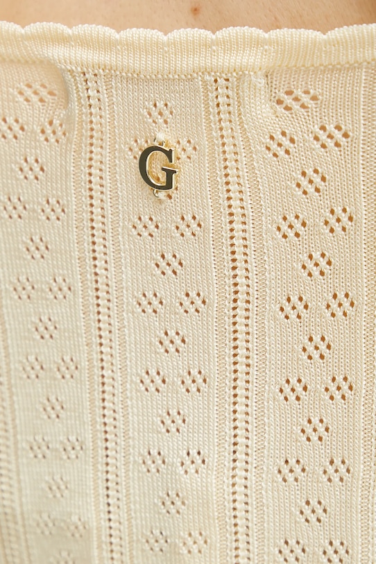 Этот топ из коллекции Guess выполнен из эластичного трикотажа. Модель выполнена из исключительно комфортного хлопкового материала. - Органический хлопок выращивается без использования вредных химикатов, химических пестицидов и искусственных удобрений. - Простой дизайн, не стесняющий движений. - Алмазный вырез. - Модель без бретелек. - Длина: 43 см. - Ширина под мышками: 36 см. - Размеры указаны для размера: S.