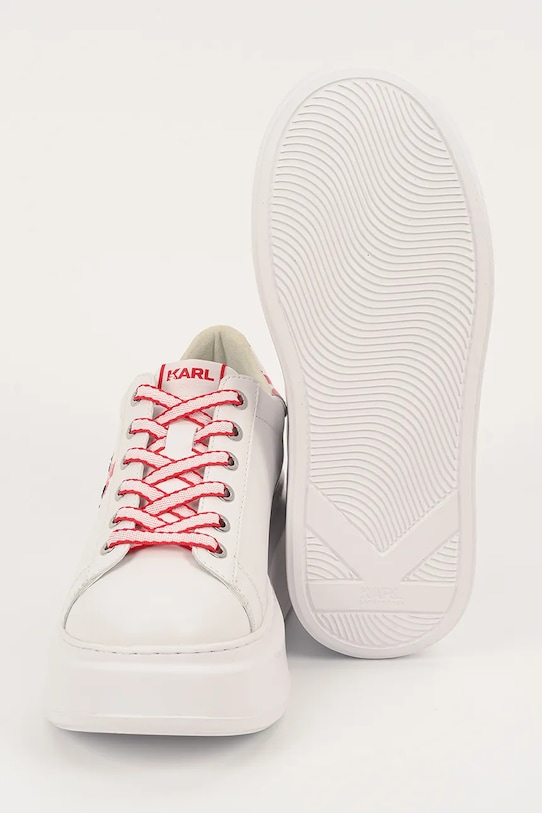 Кроссовки из коллекции Karl Lagerfeld. Изготовлены из кожи наппа и оснащены мягкой текстильной подкладкой для исключительного комфорта. - Круглый, жёсткий носок. - Уютный салон. - Усиленный задник обеспечивает отличную поддержку лодыжки и пятки. - Контрастный задник. - Плоские шнурки устраняют давление на подъем стопы, обеспечивая хорошую посадку и комфорт. - Подошва из вспененного ЭВА. - Платформенная модель.